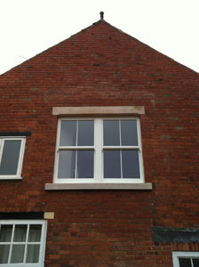 The bay window was falling away from the house. The bay window was replaced with a double sash window. New hand dressed traditional stone cill and head was installed as well as new reclaimed brick work under the window.